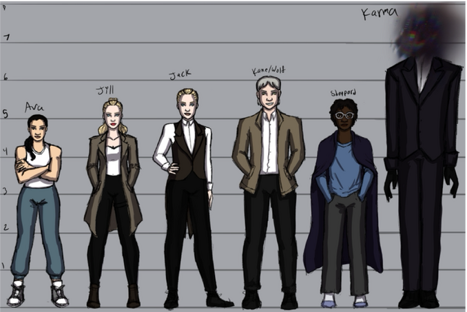 WISC(Wolf in Sheep's Clothing): This story is set in modern Europe and follows a group of criminals who end up working together on a heist despite typically being loners. They're made up of the twin assassins Jack and Jill, the weapons dealer and con man Wolf, the muscle Giant(aka Ava), and the ones who brought them together the secretive hacker Shepherd and his ominous partner Karma.