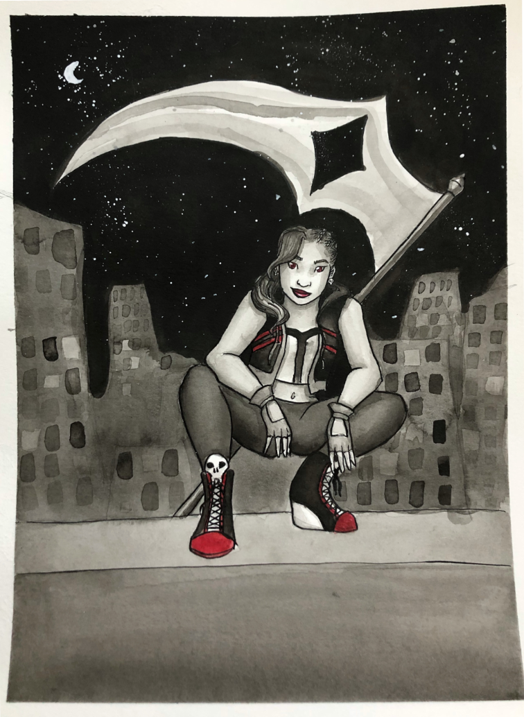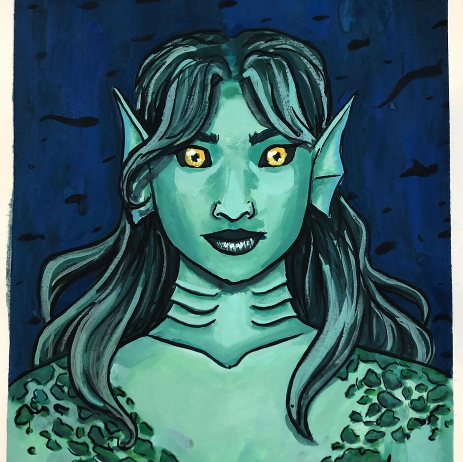 I like to design lots of characters and make drawings and paintings of them. I mainly do fantasy stuff and like to work in watercolor and gouache.